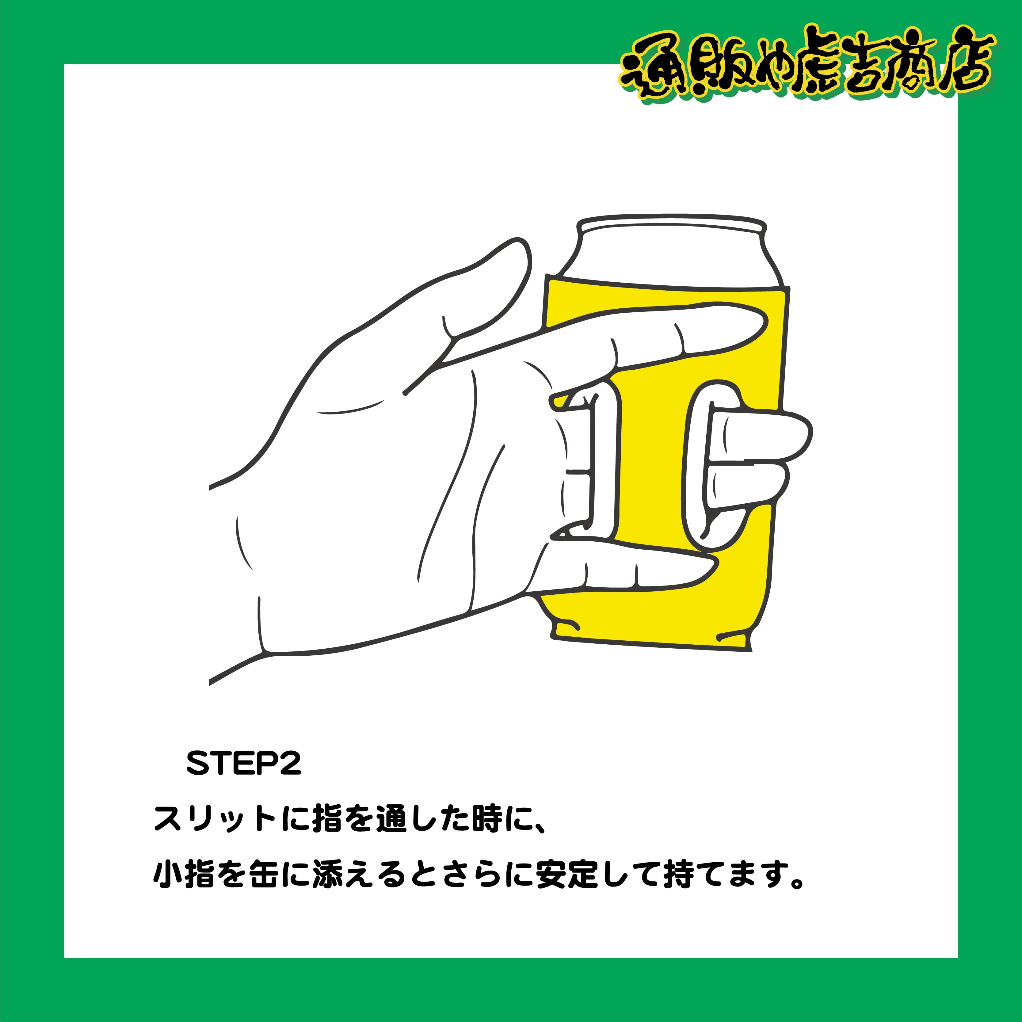 缶をジョッキのように持てる取手が付いているので、手が冷える心配もなし。